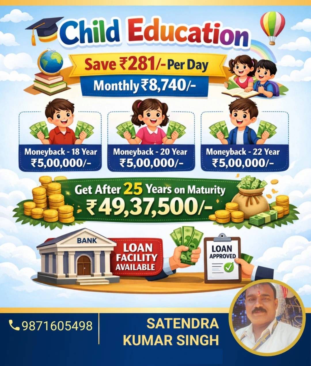 Satender life insurance & investment service which MD advisor Mr. satender ji is very dynamic person my father was death on 05 may 2021 and LIC death claim satteld by Mr. satender’s team very very thanks
